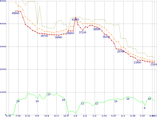 | HDS725050KLAT80 (500GB,8MB)の価格推移 | | | (2005年6月16日~2006年8月31日) |