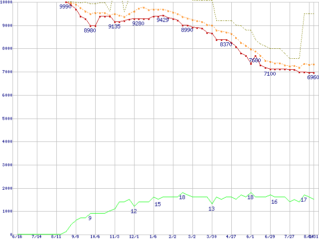 | ST3160812A (160GB,8MB)の価格推移 | | | (2005年6月16日~2006年8月31日) |