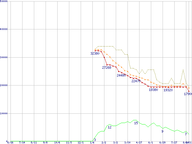 | ST3400633AS (400GB,16MB)の価格推移 | | | (2005年6月16日~2006年8月31日) |