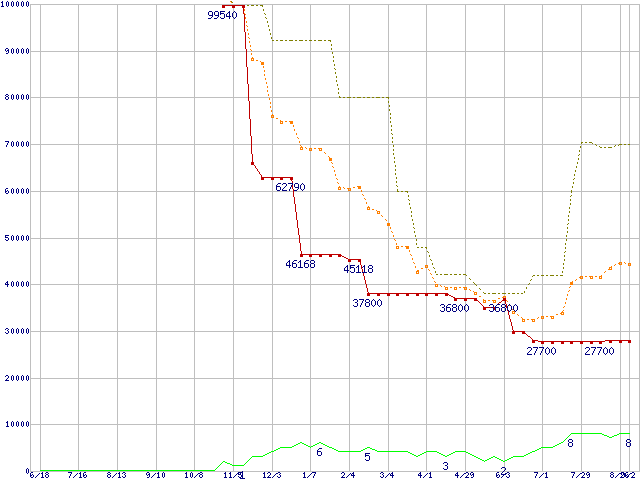 | PC2-4200* 2GBの価格推移 | | | (2005年6月18日~2006年9月2日) |