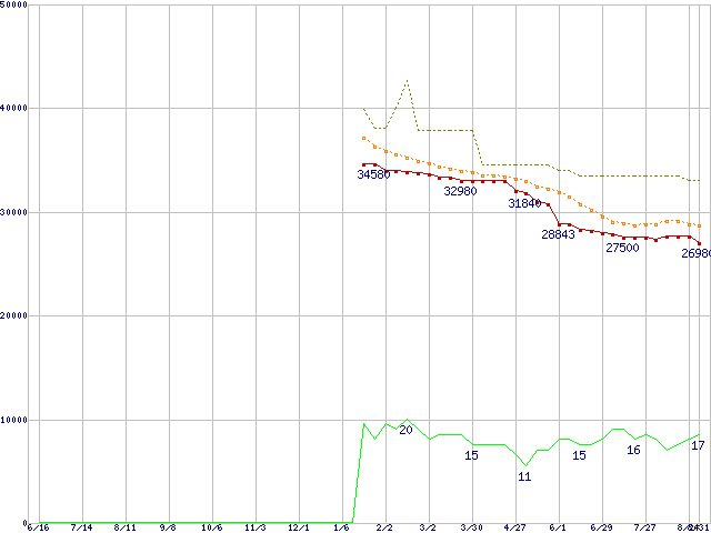 | WD1500ADFD (150.0GB)の価格推移 | | | (2005年6月16日~2006年8月31日) |