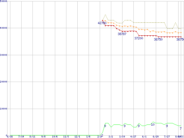 | WD1500AHFD (150.0GB)の価格推移 | | | (2005年6月16日~2006年8月31日) |
