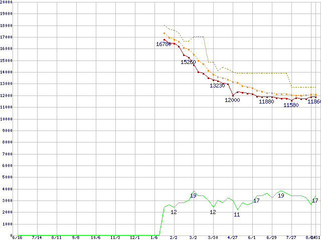 | 7V300F0 (300GB)の価格推移 | | | (2005年6月16日~2006年8月31日) |