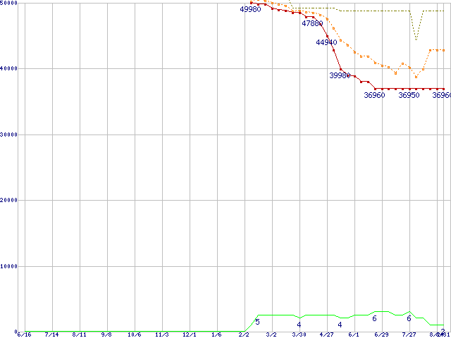 | ST3500641NS (500GB,16MB)の価格推移 | | | (2005年6月16日~2006年8月31日) |