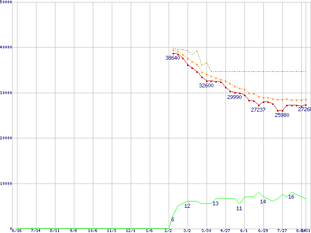 | 7H500R0 (500GB)の価格推移 | | | (2005年6月16日~2006年8月31日) |