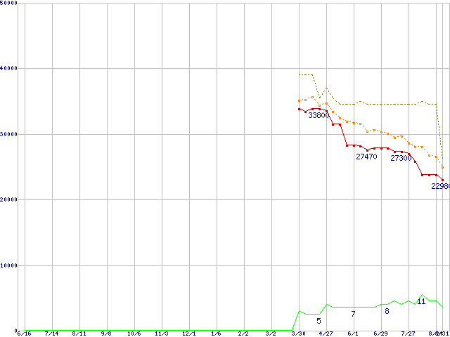 | WD5000KS (500GB)の価格推移 | | | (2005年6月16日~2006年8月31日) |