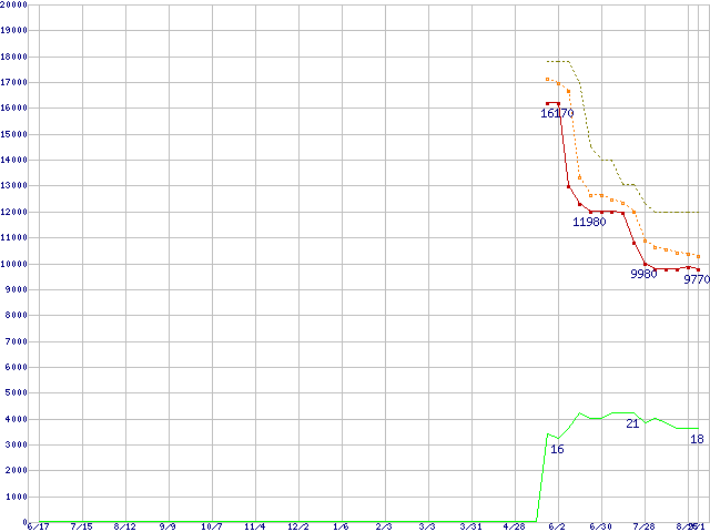 | Athlon 64 3200+ (2.0GHz,L2 512KB)の価格推移 | | | (2005年6月17日~2006年9月1日) |
