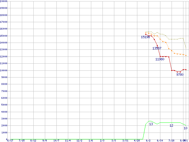 | Sempron 3600+ (2.0GHz,L2 256KB)の価格推移 | | | (2005年6月17日~2006年9月1日) |