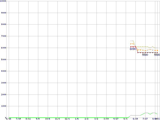 | ST380211AS (80GB,2MB)の価格推移 | | | (2005年6月16日~2006年8月31日) |