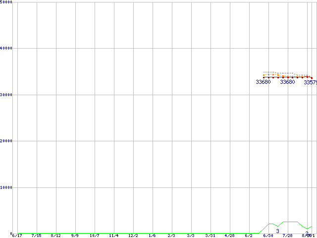 | Turion 64 X2 TL-56 (1.8GHz,512KB×2)の価格推移 | | | (2005年6月17日~2006年9月1日) |