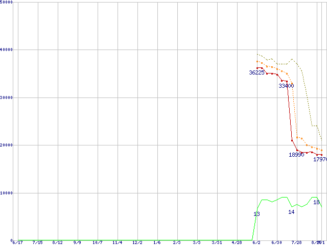 | Athlon 64 X2 3800+ (2.0GHz,L2 512KB×2)の価格推移 | | | (2005年6月17日~2006年9月1日) |
