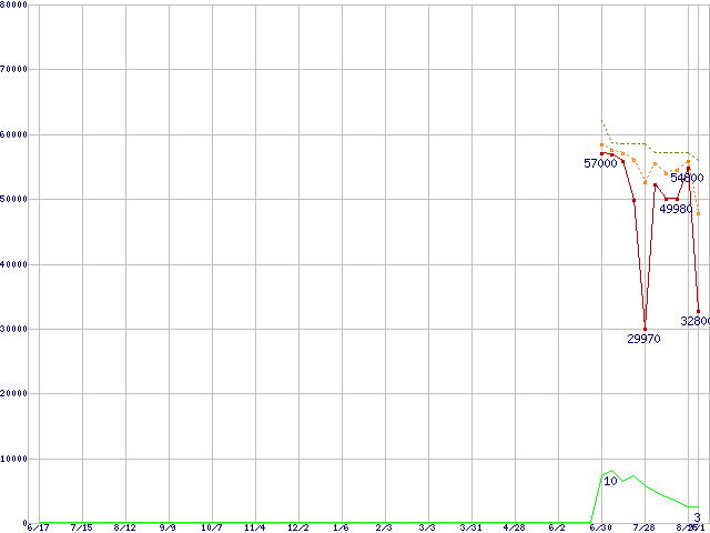 | Athlon 64 X2 4400+ (2.2GHz,L2 1MB×2)の価格推移 | | | (2005年6月17日~2006年9月1日) |