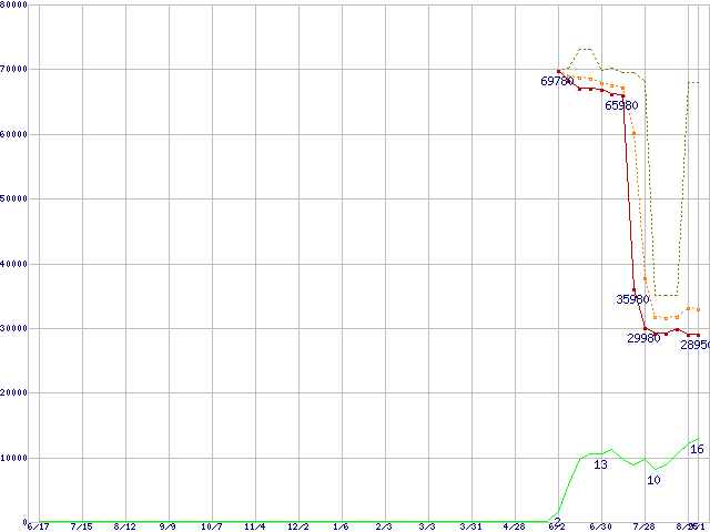 | Athlon 64 X2 4600+ (2.4GHz,L2 512KB×2)の価格推移 | | | (2005年6月17日~2006年9月1日) |