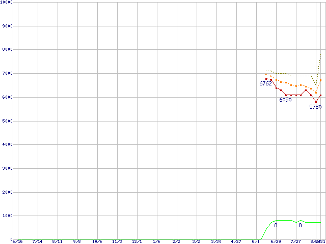 | HDS721612PLA380 (120GB,8MB)の価格推移 | | | (2005年6月16日~2006年8月31日) |