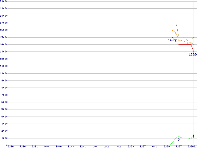 | WD360ADFD (36GB)の価格推移 | | | (2005年6月16日~2006年8月31日) |
