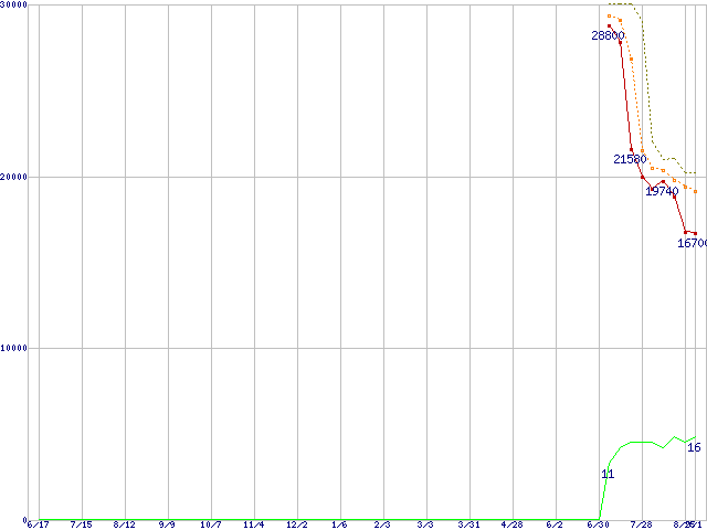 | Athlon 64 3500+ (2.2GHz,L2 512KB,TDP35W)の価格推移 | | | (2005年6月17日~2006年9月1日) |