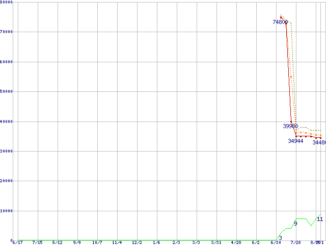 | Athlon 64 X2 4600+ (2.4GHz,L2 512KB×2,TDP65W)の価格推移 | | | (2005年6月17日~2006年9月1日) |