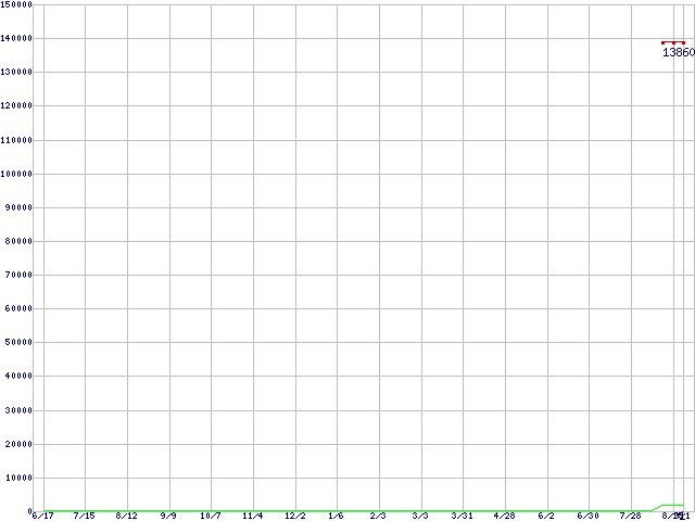 ※このグラフは過去のデータも税率5%相当に調整した税込み相当額のグラフです。 税率変更や、総額表示方式導入(2004年4月)の影響は除いています。 | | | ●凡例 | 最安値 (点線部は販売店未確認 または未調査) | 平均値 | 最高値 | ショップ数 |
