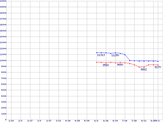 LGA 771(FSB 667MHz,Dual Core,L2 2MB×2)の最安値推移