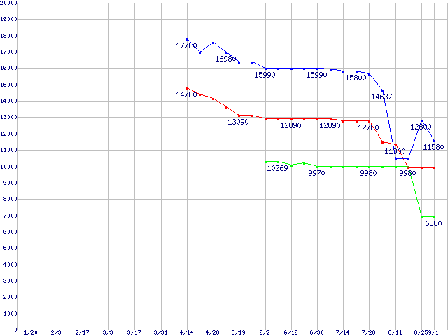 Socket 478 (FSB 533MHz,L2 256KB)の最安値推移
