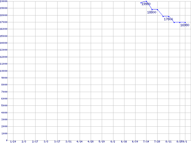 | Socket 478 (FC-PGA2,FSB 800MHz,L2 512KB,Hyper-Threading,Northwood)の最安値推移 | | | (2006年1月20日~2006年9月1日) |