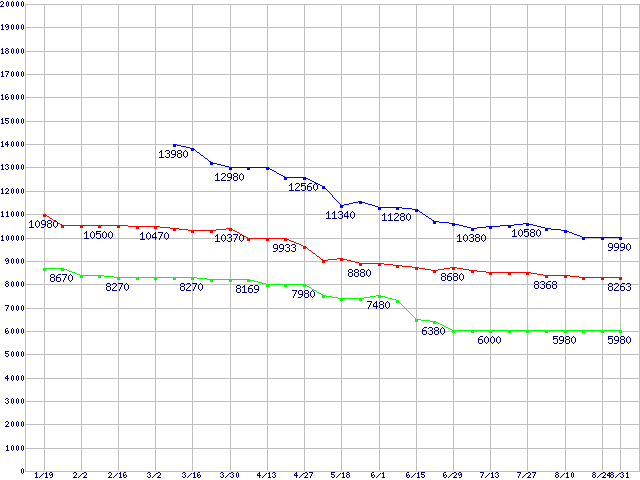WD Caviar SE (7200rpm,Serial ATA II,8MB)の最安値推移