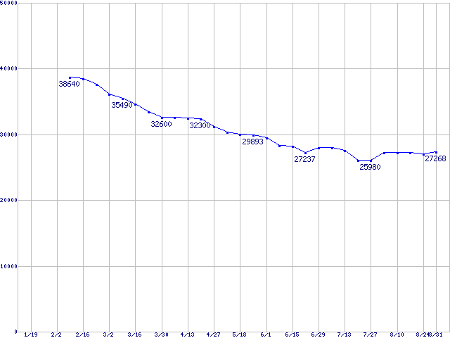 | MaXLine Pro 500 (7200rpm,16MB,Ultra ATA/133)の最安値推移 | | | (2006年1月19日~2006年8月31日) |