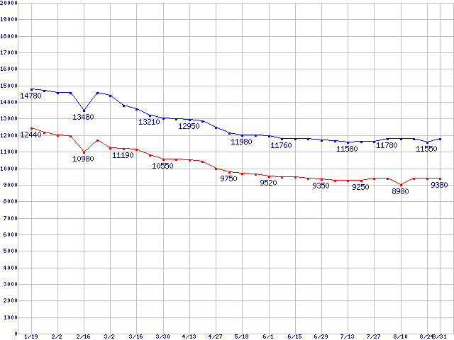 | MaXLine III (7200rpm,16MB,Ultra ATA/133,RoHS指令準拠)の最安値推移 | | | (2006年1月19日~2006年8月31日) |