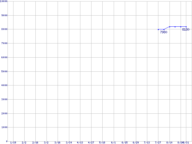 | SpinPoint P120 (7200rpm,Serial ATA II/3Gbps,8MB)の最安値推移 | | | (2006年1月19日~2006年8月31日) |