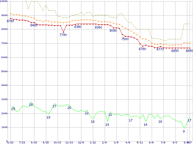| 6L160P0 (160GB,8MB)の価格推移 | | | (2005年6月23日~2006年9月7日) |