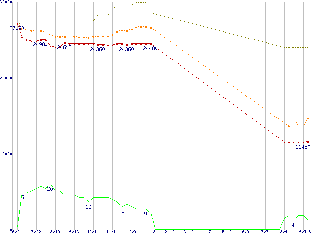| Pentium 4 541 (3.20GHz)の価格推移 | | | (2005年6月24日~2006年9月8日) |