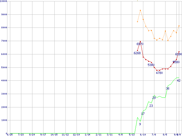 | PC2-6400 512MBの価格推移 | | | (2005年6月25日~2006年9月9日) |
