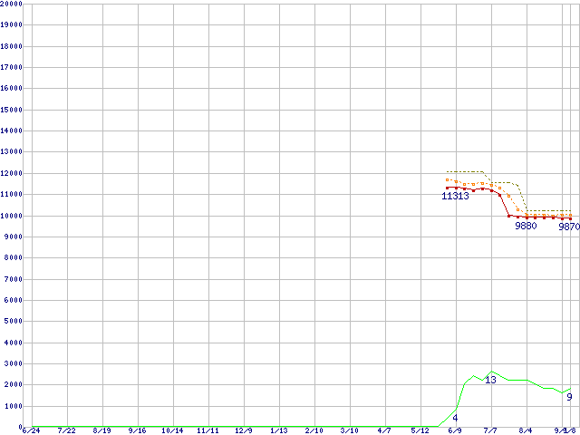 | Celeron D 356 (3.33GHz)の価格推移 | | | (2005年6月24日~2006年9月8日) |