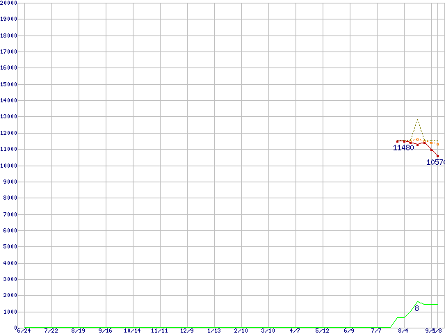 | Sempron 3000+ (1.6GHz,L2 256KB,TDP35W)の価格推移 | | | (2005年6月24日~2006年9月8日) |