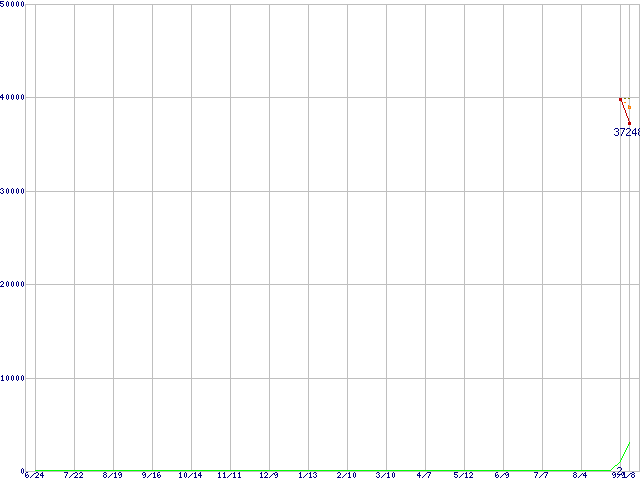 | Core 2 Duo T7200 (2.00GHz,L2 4MB)の価格推移 | | | (2005年6月24日~2006年9月8日) |