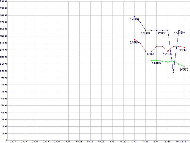 Core Duo向けSocket 478 (FSB 667MHz,L2 2MB,Dual Core)の最安値推移