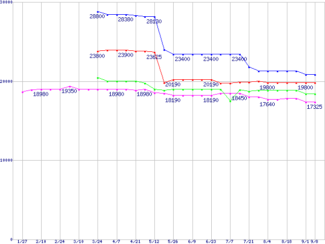 Socket AM2 (FSB 1000MHz,Dual Core L2 1MB)の最安値推移