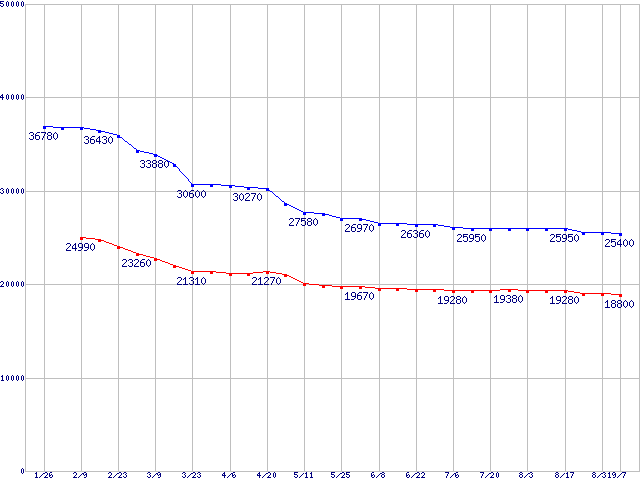 | DiamondMax 11 (7200rpm,16MB,Serial ATA II,3Gbps)の最安値推移 | | | (2006年1月26日~2006年9月7日) |