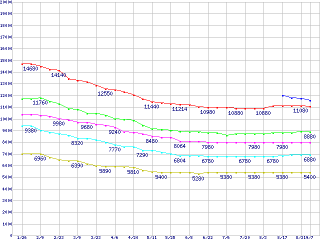 Deskstar T7K500 (7200rpm,Serial ATA II/3Gbps)の最安値推移