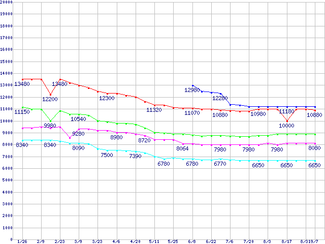 | DiamondMax 10 (7200rpm,Ultra ATA/133,RoHS指令準拠)の最安値推移 | | | (2006年1月26日~2006年9月7日) |
