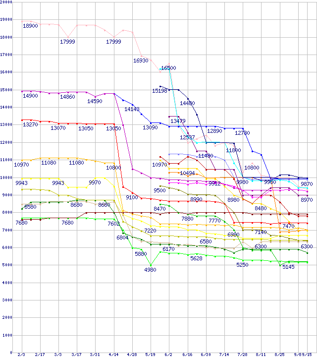 CPU主要製品の最安値推移