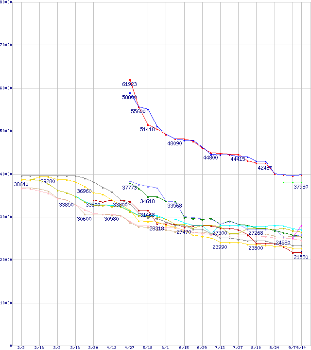 HDD 400~500GB未満の最安値推移