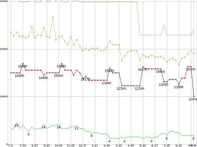 PC3200(DDR400) DDR SDRAM DIMM ECC対応 Registeredタイプの最安値推移