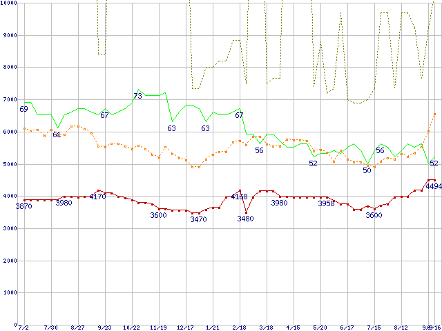 PC2-4200*(DDR2-533) DDR2 SDRAM DIMMの最安値推移