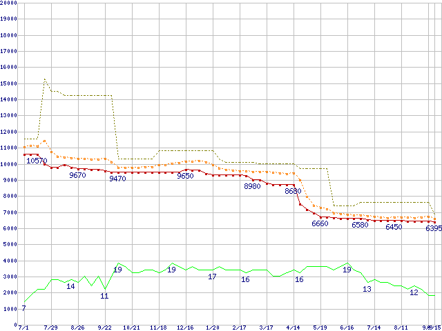 | Celeron D 336 (2.80GHz)の価格推移 | | | (2005年7月1日~2006年9月15日) |