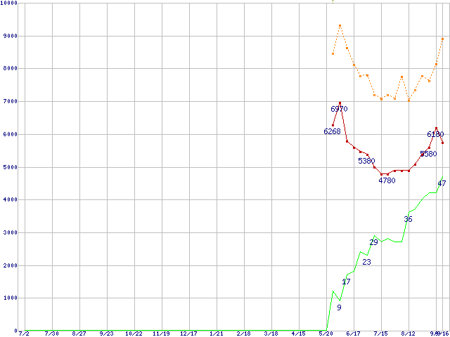| PC2-6400 512MBの価格推移 | | | (2005年7月2日~2006年9月16日) |