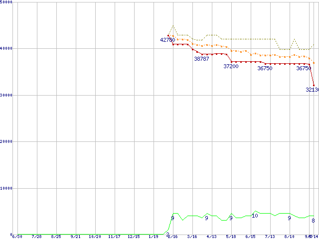 | WD1500AHFD (150.0GB)の価格推移 | | | (2005年6月30日~2006年9月14日) |