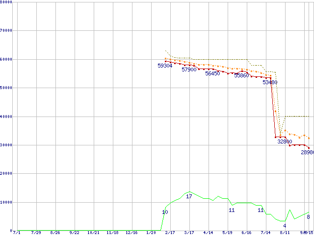 | Athlon 64 X2 4400+ (2.2GHz,L2 1MB×2,Socket 939,TDP89W)の価格推移 | | | (2005年7月1日~2006年9月15日) |