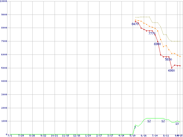 | Sempron 2800+ (1.6GHz,L2 128KB)の価格推移 | | | (2005年7月1日~2006年9月15日) |