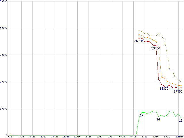 | Athlon 64 X2 3800+ (2.0GHz,L2 512KB×2)の価格推移 | | | (2005年7月1日~2006年9月15日) |